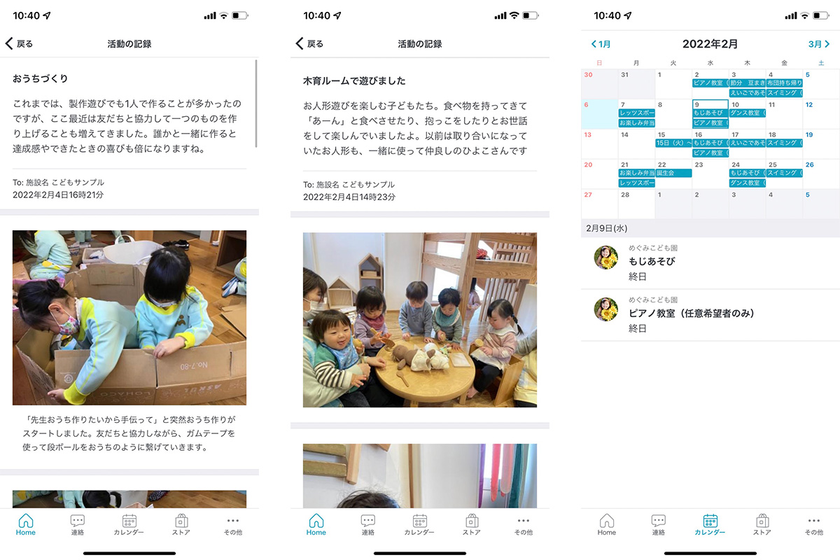 園と保護者のコミュニケーションを深める、連絡アプリを導入しています。様々な機能を利用しており、ICTにも力を入れています。